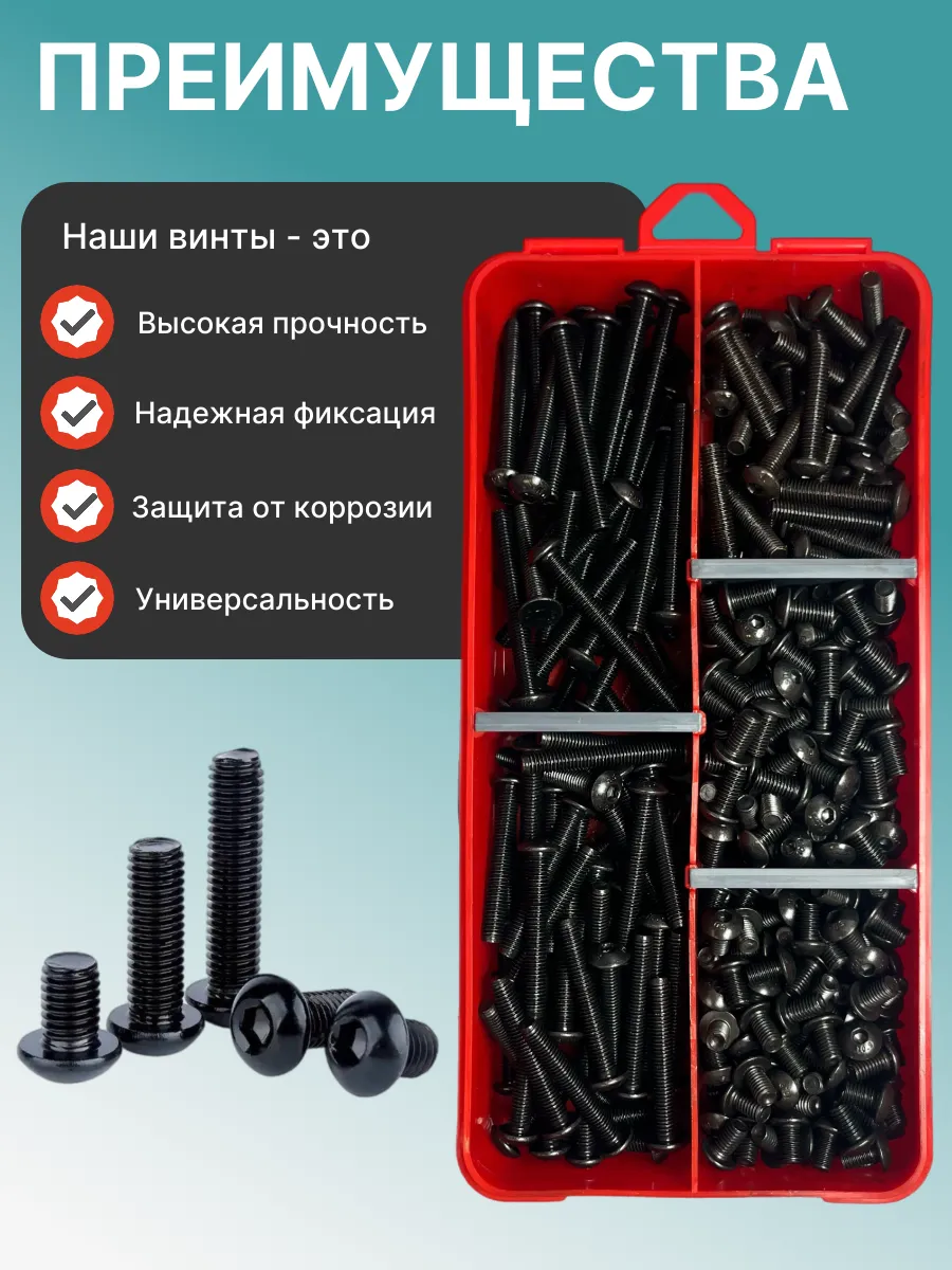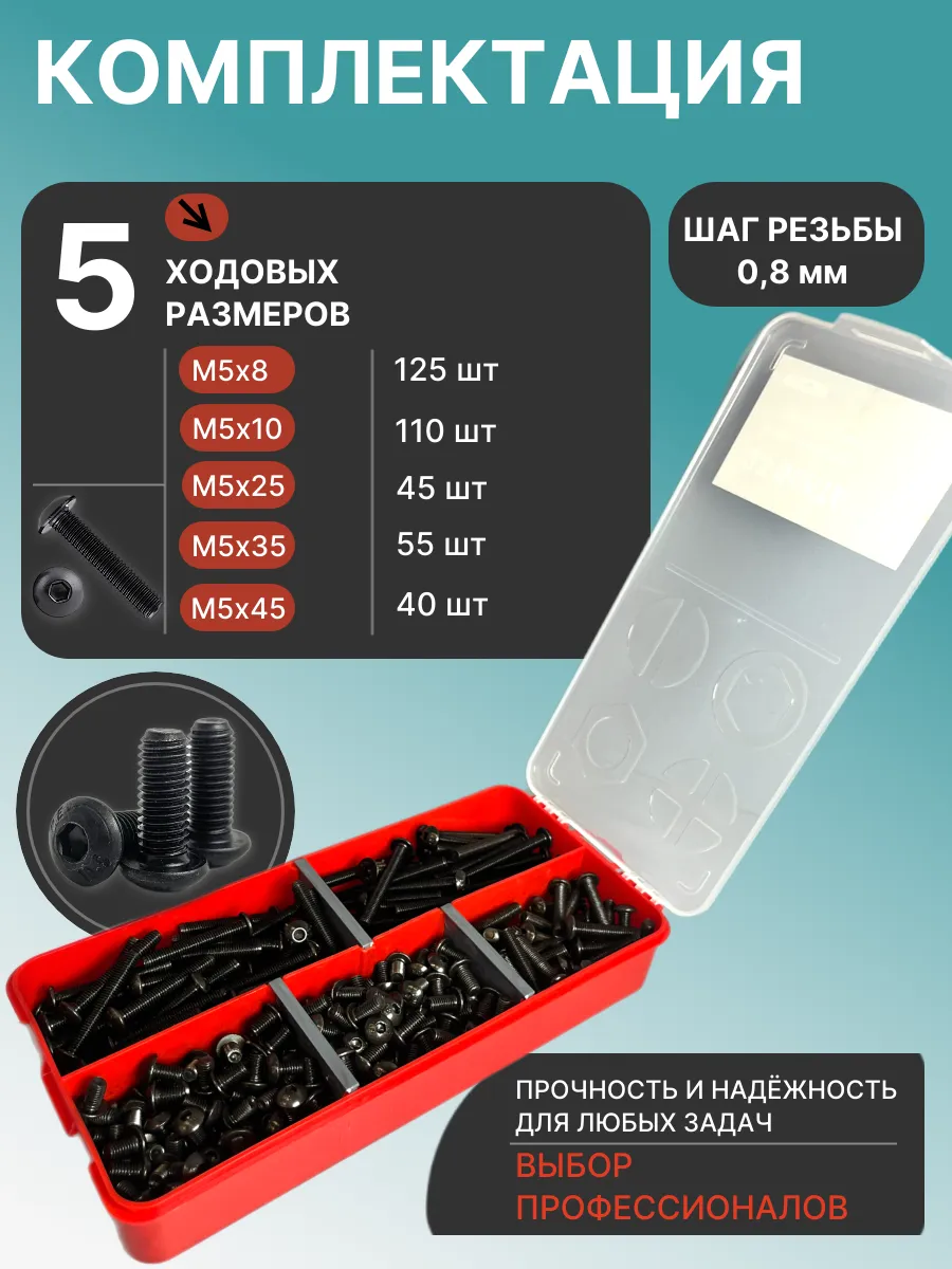 Винты чёрные М5 DIN7380 к.п.10.9 в органайзере НАБОР 2