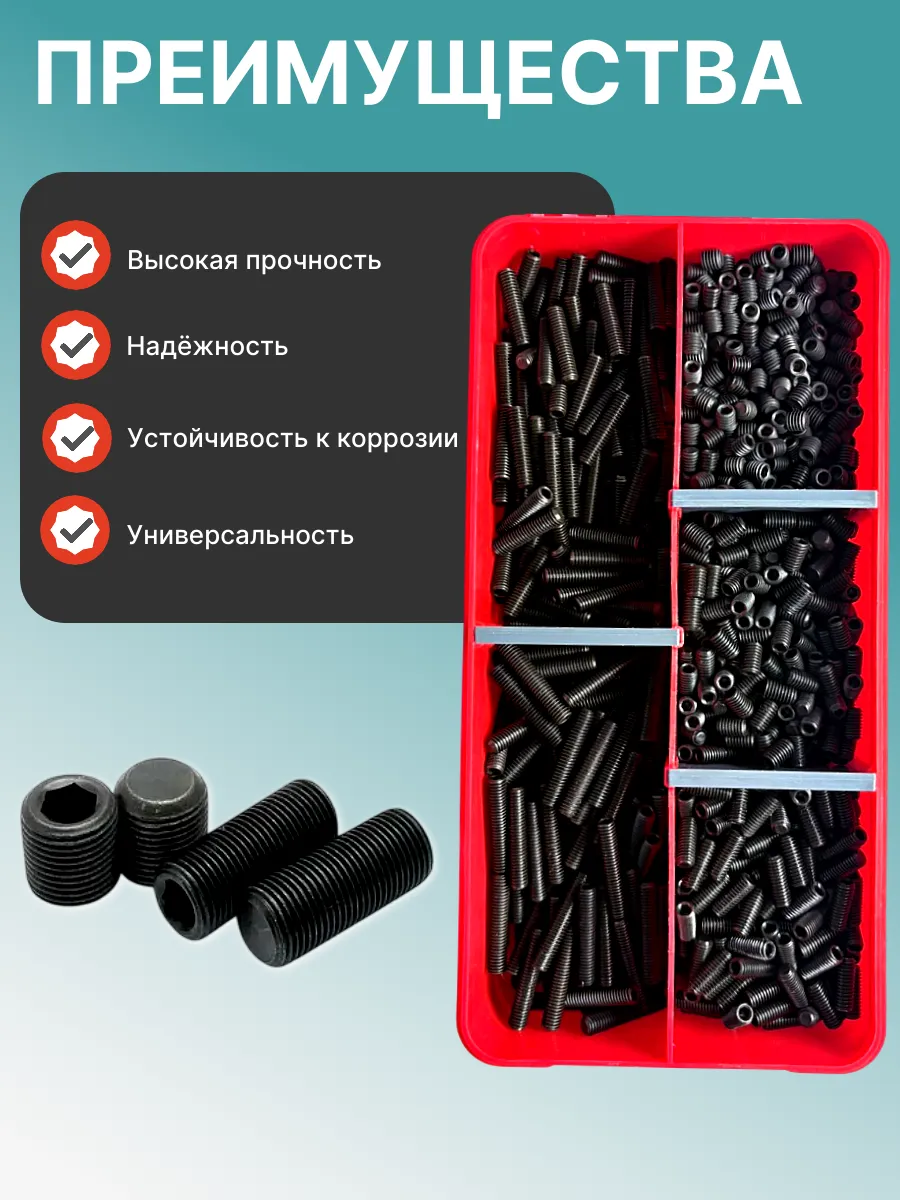 Винты гужоны М5 к.п 12.9 DIN913 в органайзере НАБОР 1