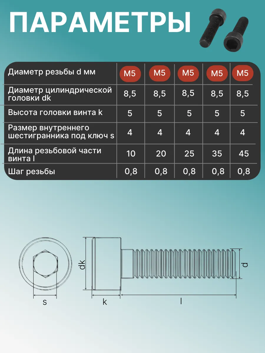 Винт высокопрочный М5х35 мм к.п.12.9 черный DIN912 - 45 шт