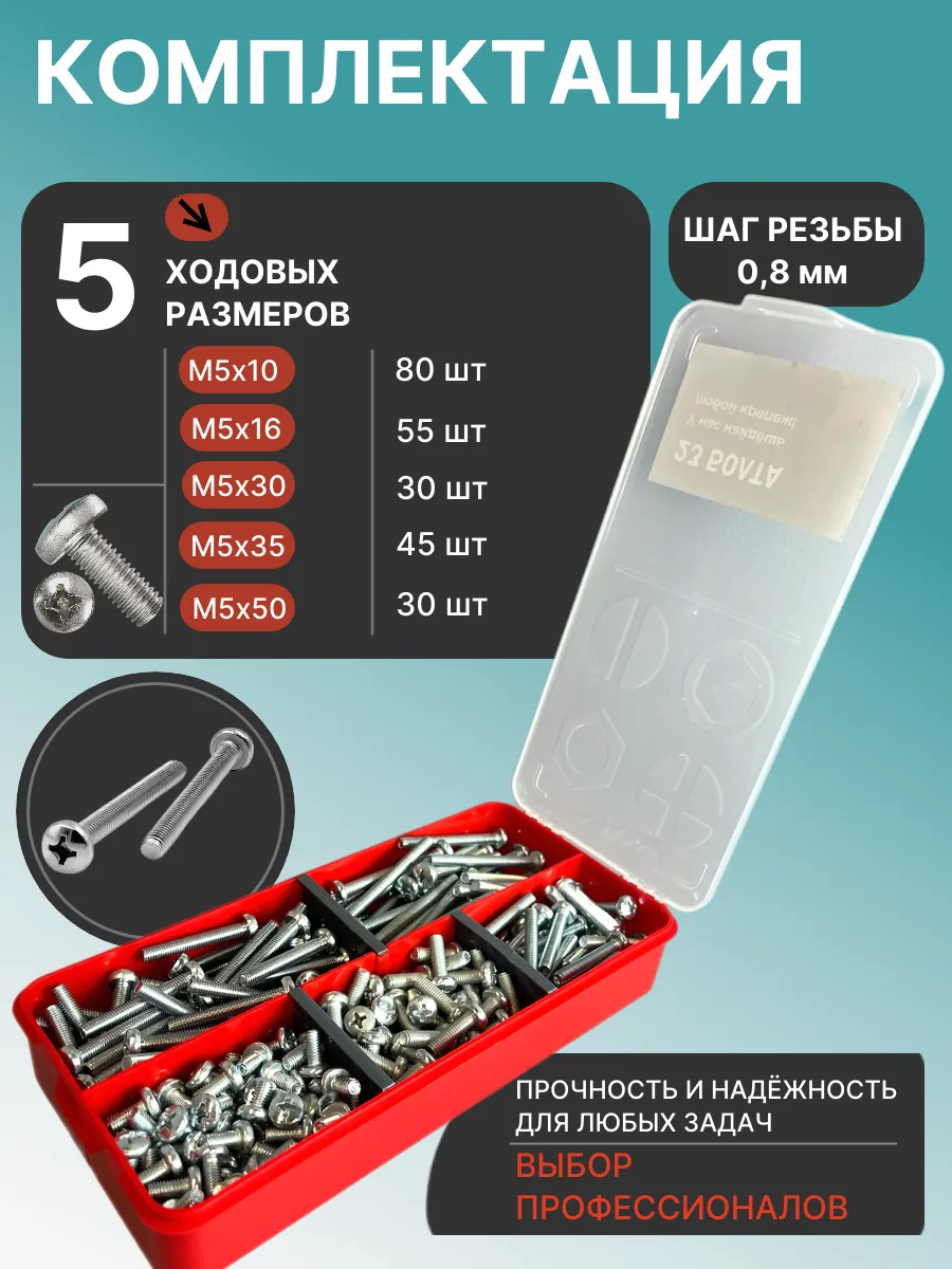 Винты М5 ОЦ DIN7985 РН в органайзере НАБОР 1