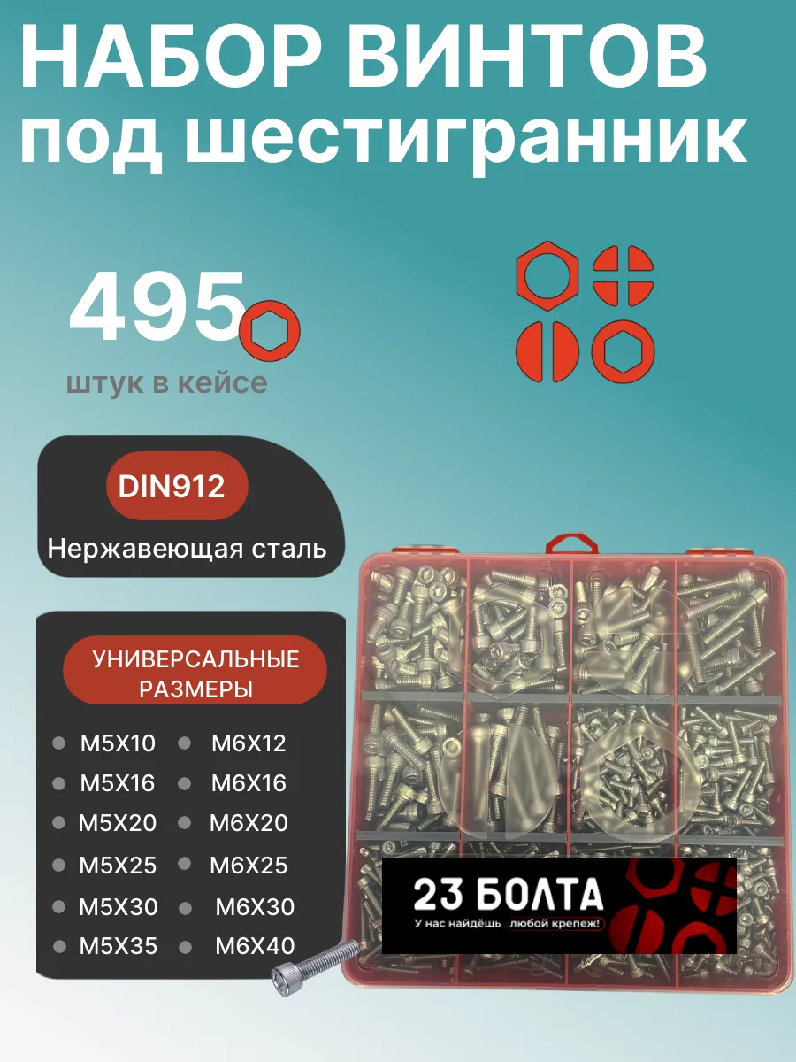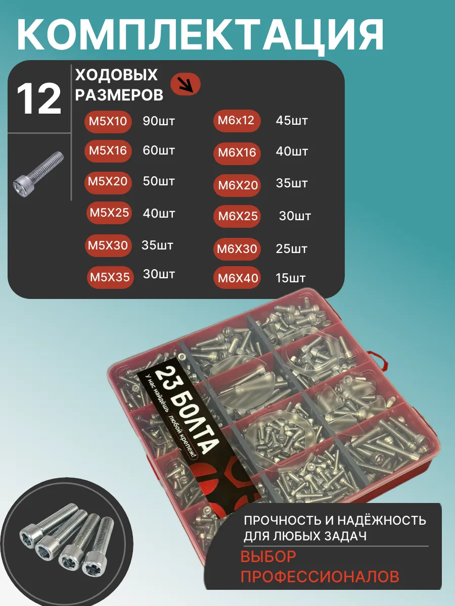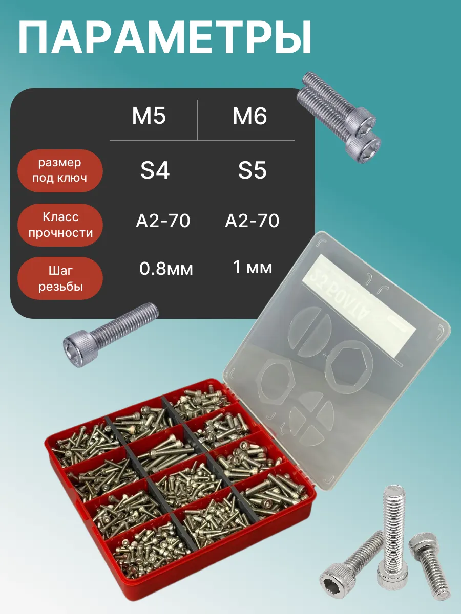 Винты нержавеющие М5 и М6 DIN912 в органайзере НАБОР 4
