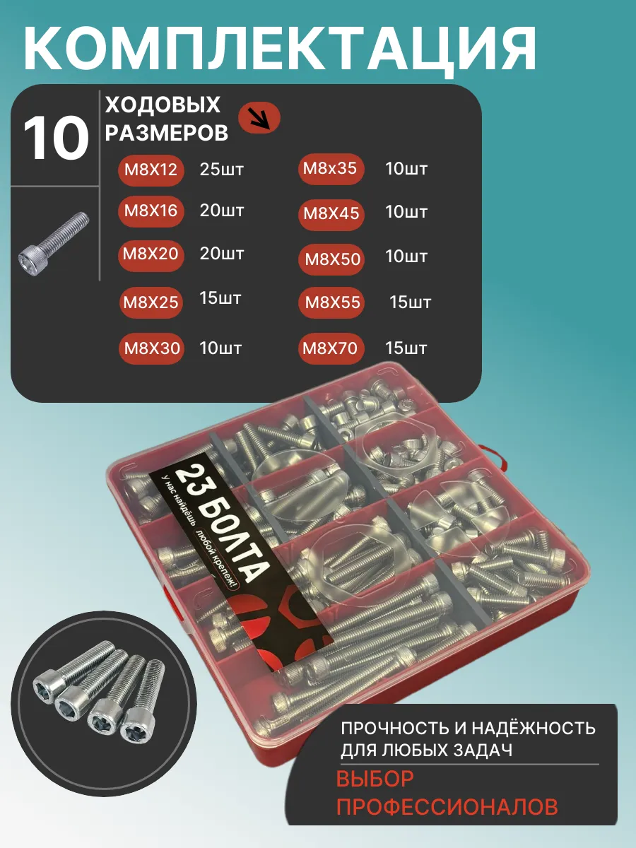 Винты нержавеющие М8 DIN912 в органайзере НАБОР 2
