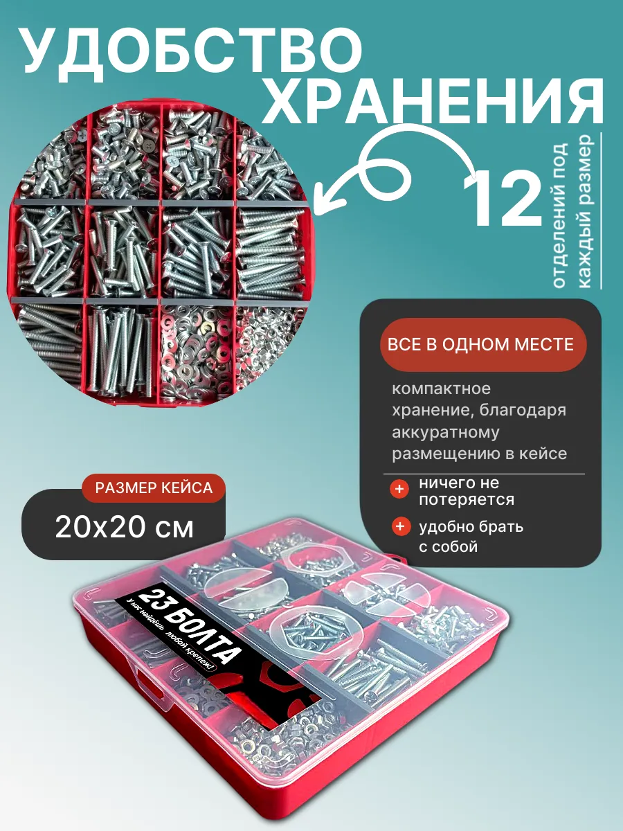 Винты потай ОЦ М5 DIN965 с гайкой,шайбой органайзер НАБОР2