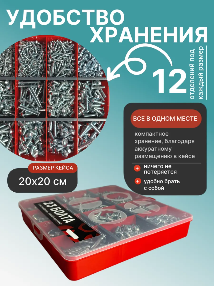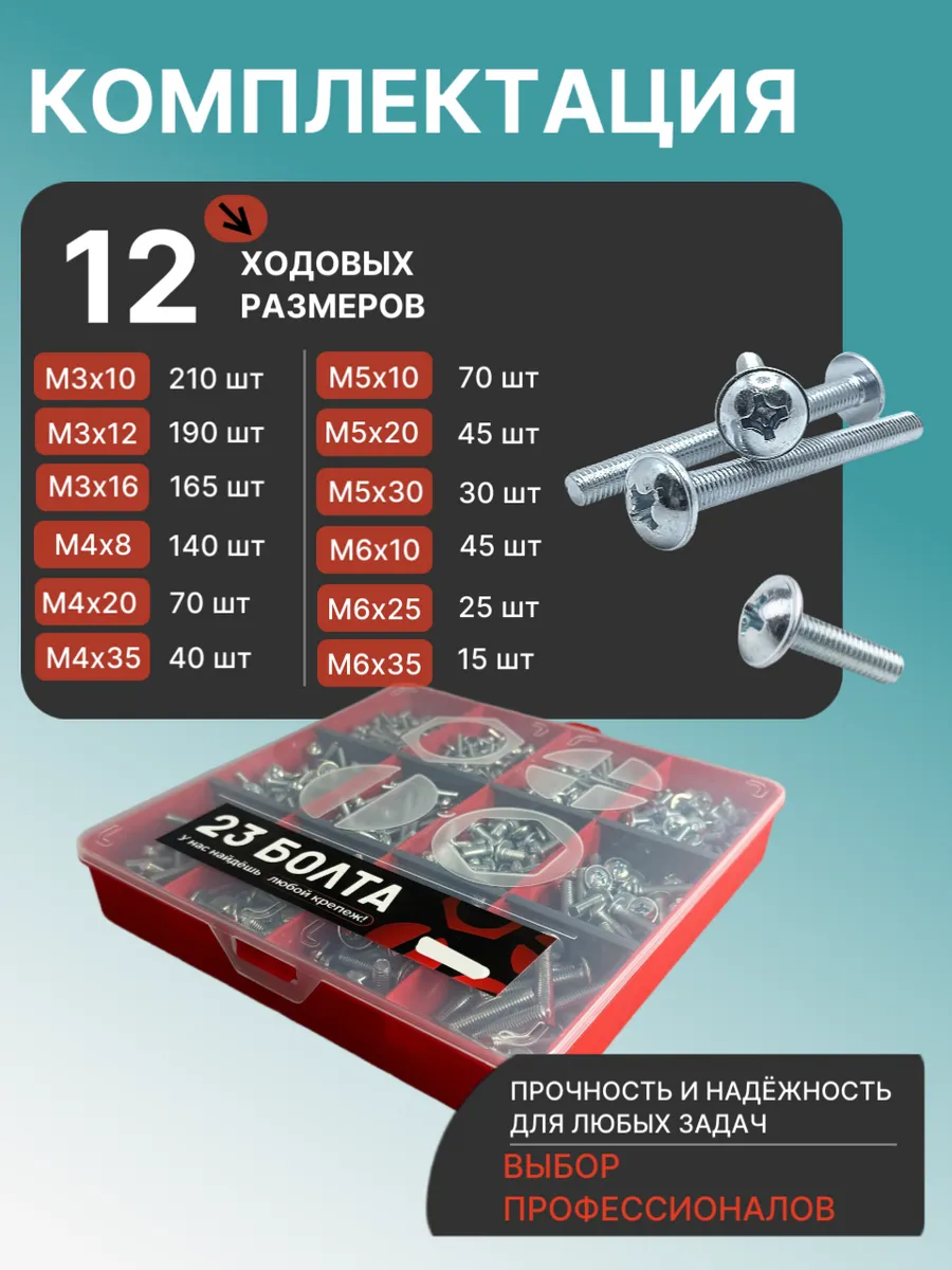Винты с прессшайбой М3,4,5,6 DIN967 в органайзере НАБОР 1