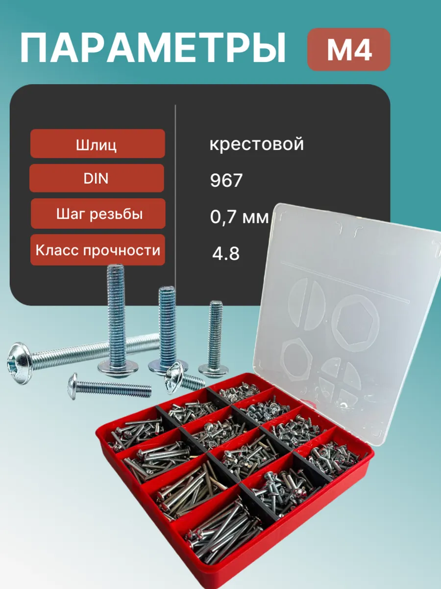 Винты с прессшайбой М4 мебельные DIN967 органайзер НАБОР 6