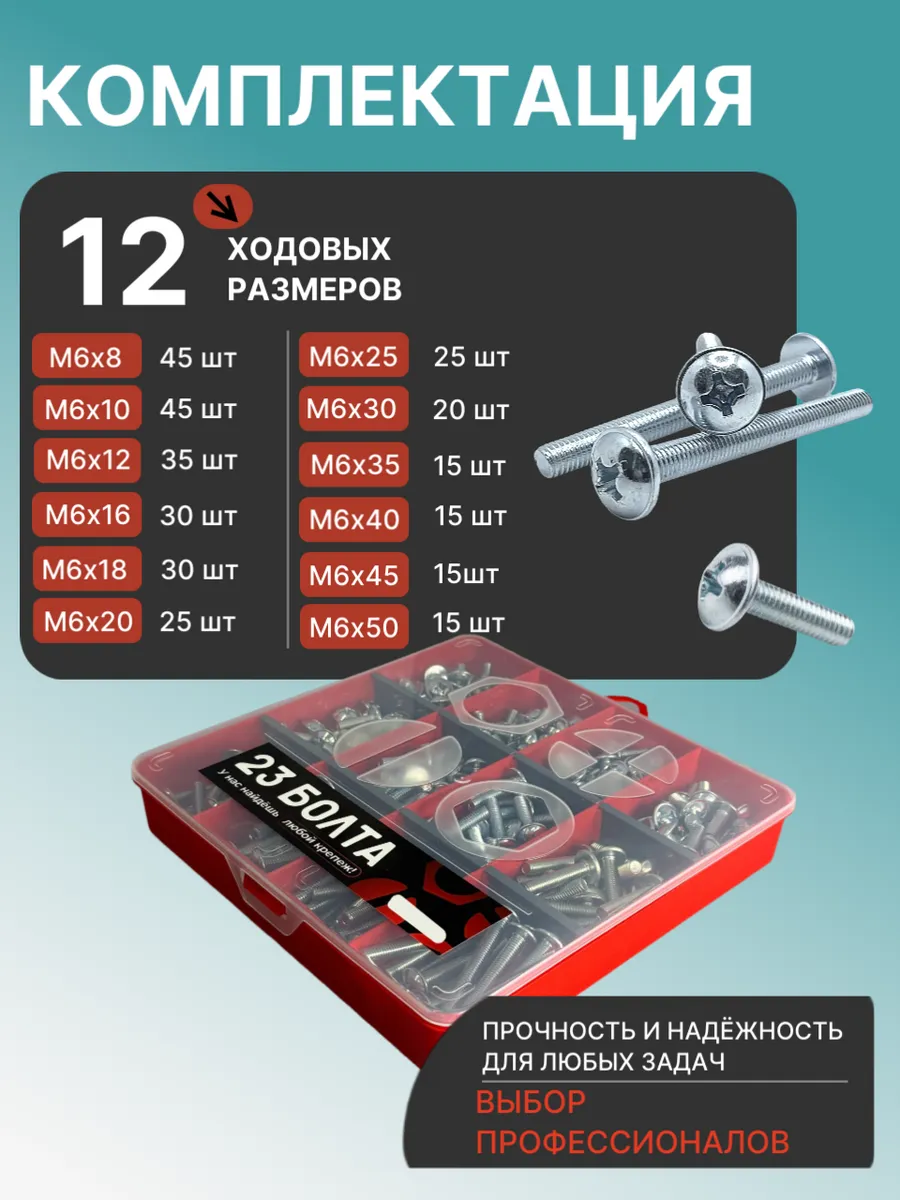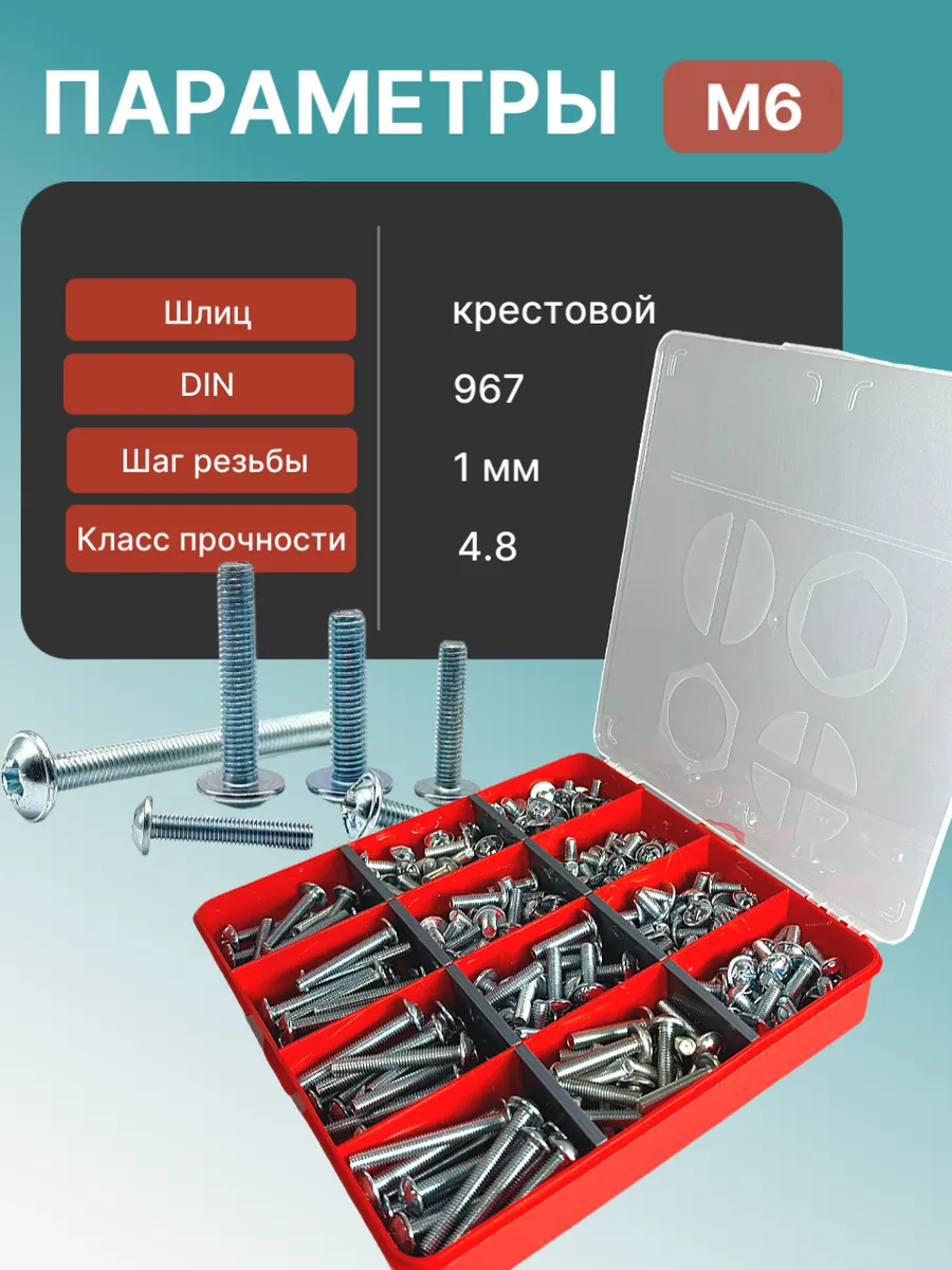 Винты с прессшайбой М6 мебельные DIN967 органайзер НАБОР 4