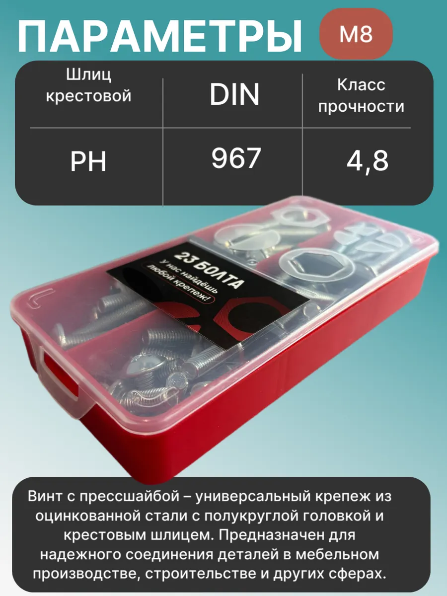 Винты с прессшайбой М8 мебельные DIN967 органайзер НАБОР 2