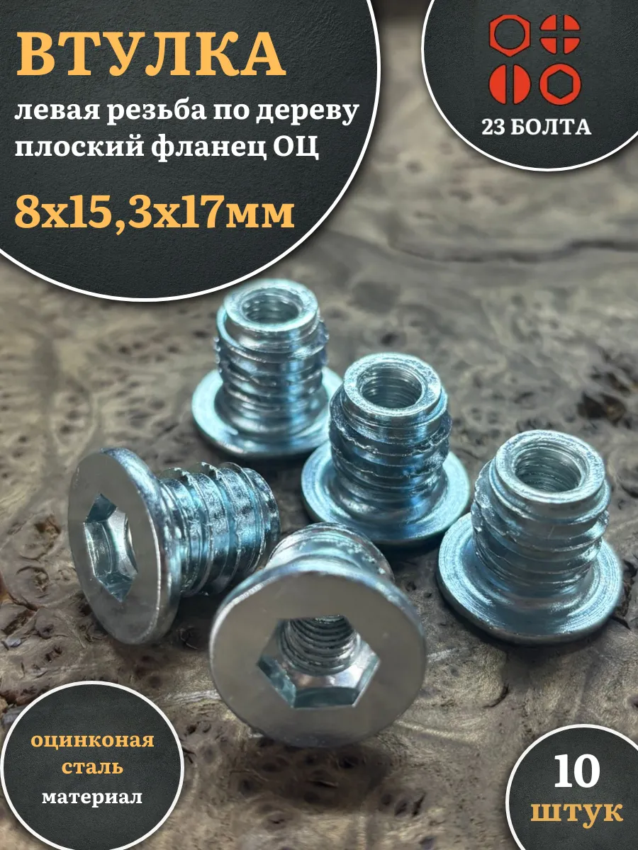 Втулка футорка М8х15,3х17 левая резьба по дереву ОЦ,10 шт