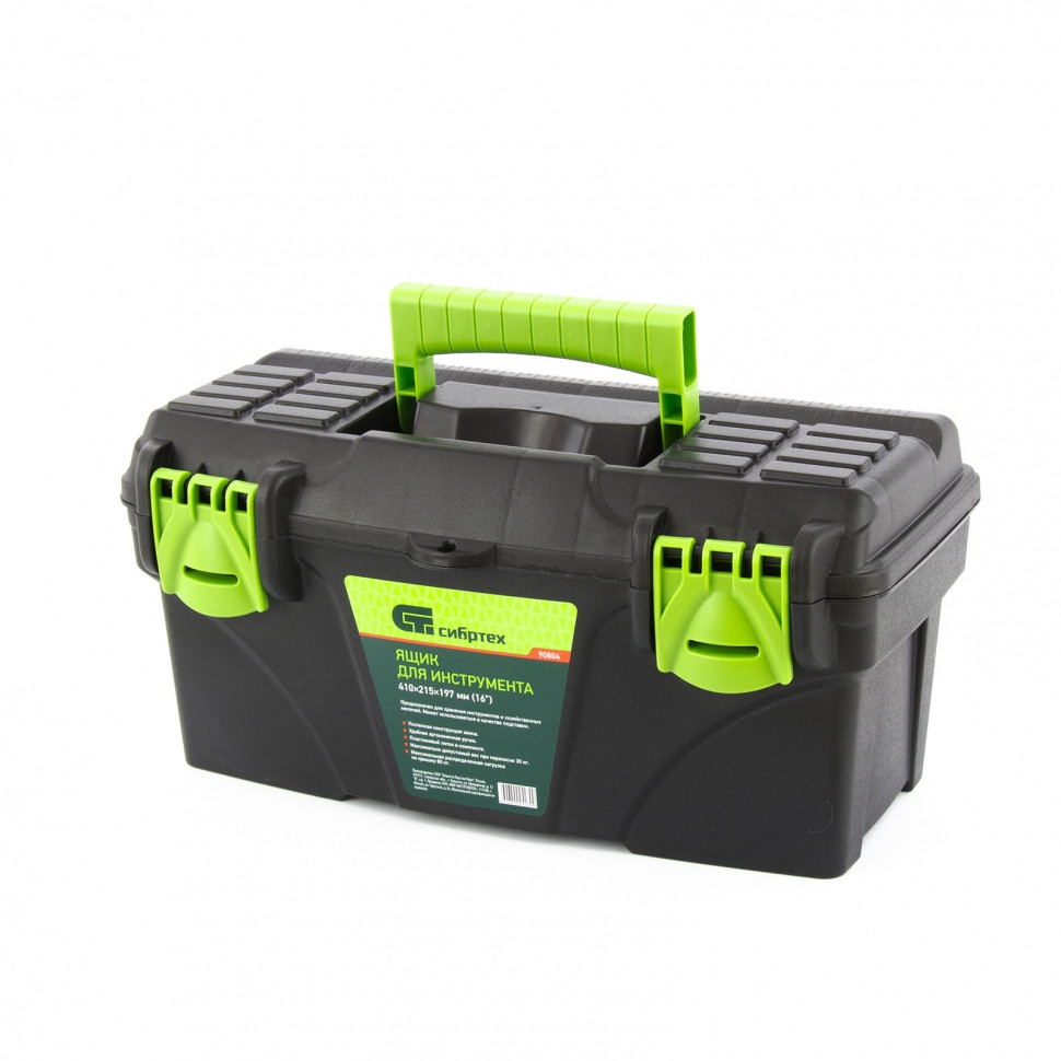 Ящик для инструмента Сибртех 90806 из пластика, 21 дюйм, 530 х 275 х 290 мм, — удобное вместилище для инструментов, бытовых мелочей, рыболовных снастей. На крышку нанесена измерительная шкала в сантиметрах и дюймах, поэтому можно проводить измерения, даже если под рукой нет линейки. Ящик пригодится в поездке, на рыбалке, а также дома, на даче или в гараже.Трехрядные петли усиливают конструкцию замка и верхней крышки, поэтому в ящик можно положить много инструментов.