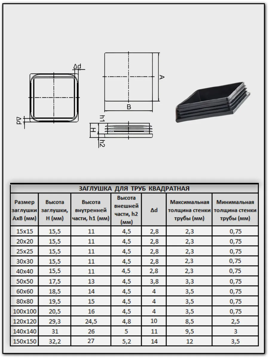 | Заглушка для труб квадратная 30х30 мм черная, 200 шт. | 26-0230ф200 | 1 шт. |
