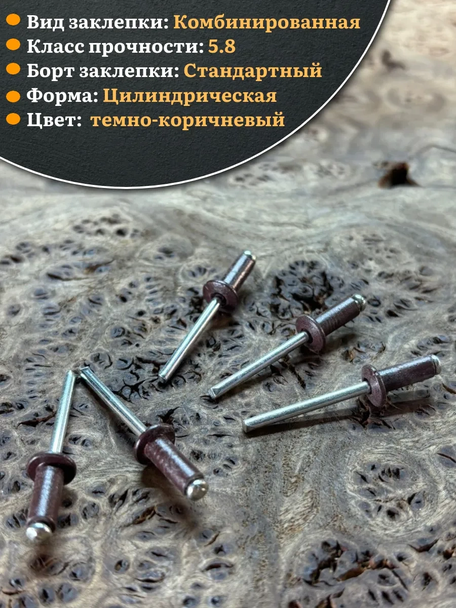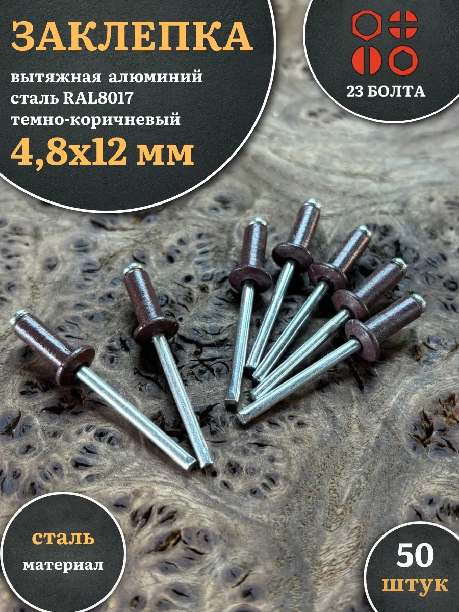 Заклепка вытяжная М4,8х12 алюминий сталь RAL8017 темно-коричневый, 50 шт.