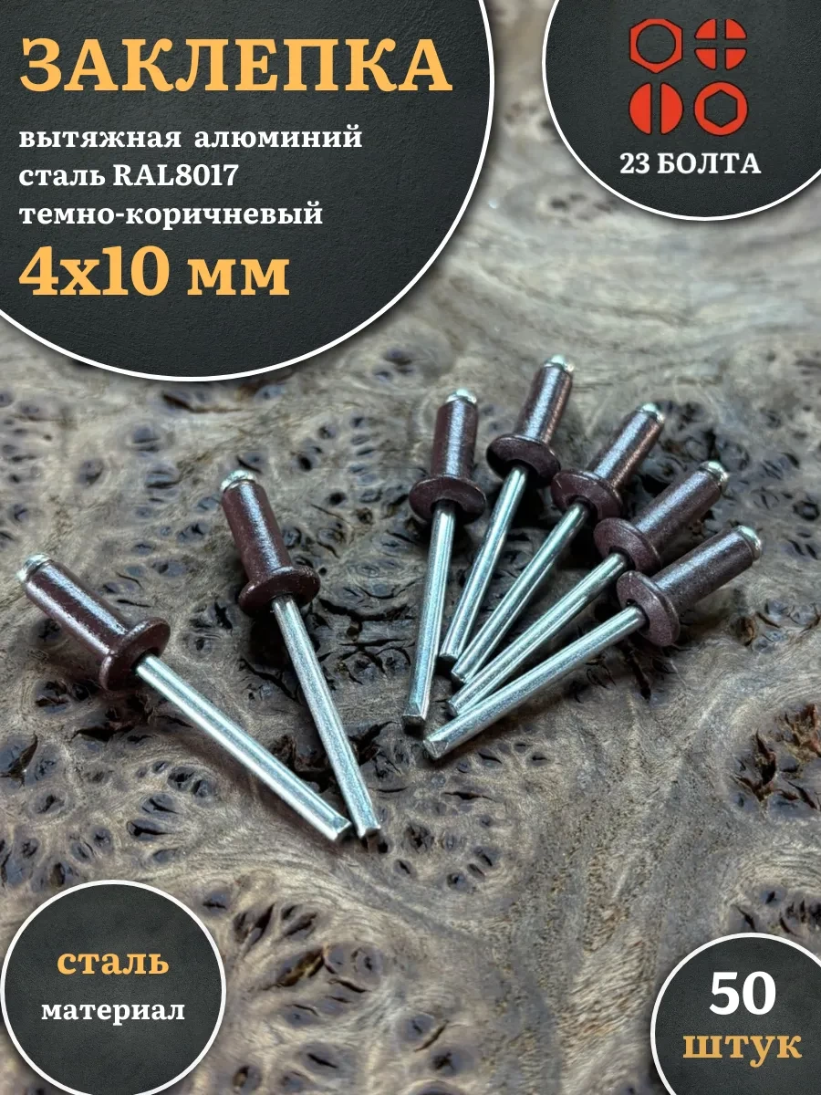 Заклепка вытяжная М4х10 алюминий сталь RAL8017 темно-коричневый, 50 шт.