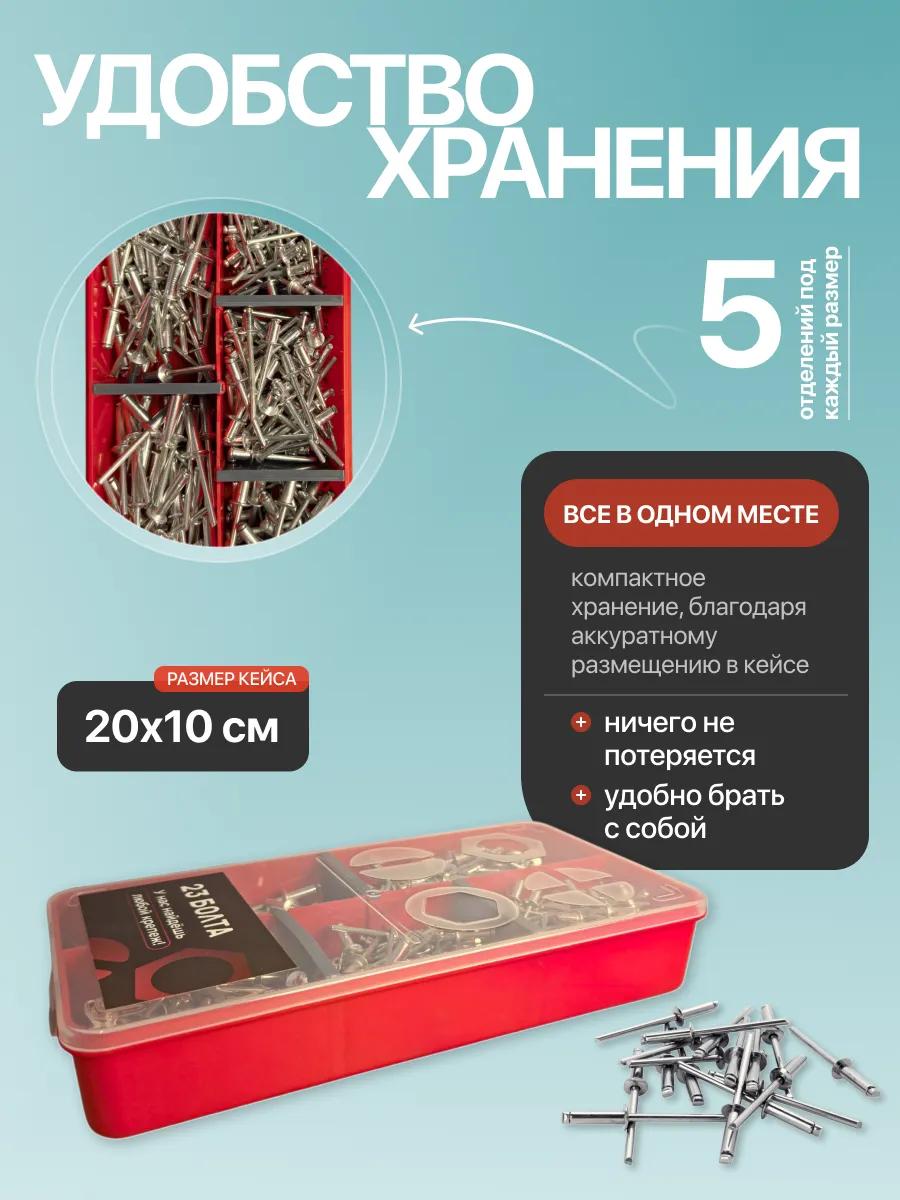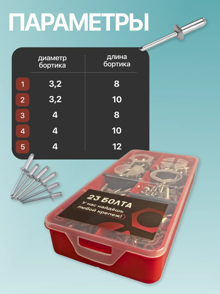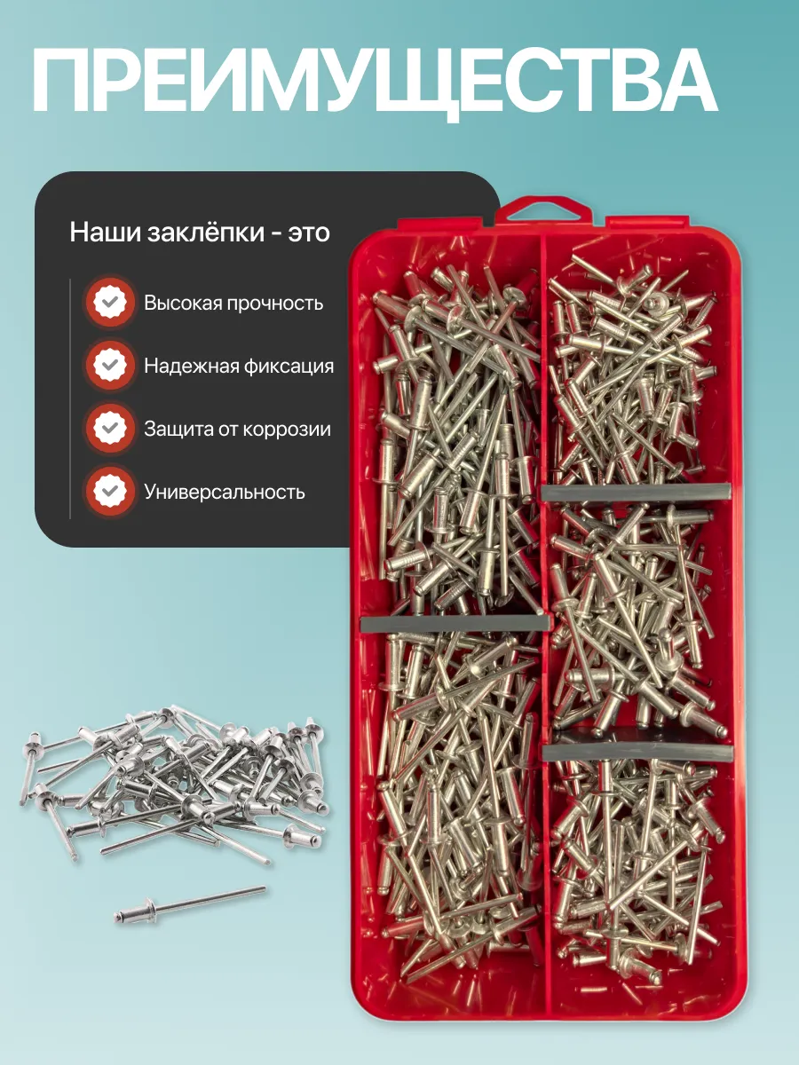Заклепки вытяжные М3,2 и М4 в органайзере НАБОР 1