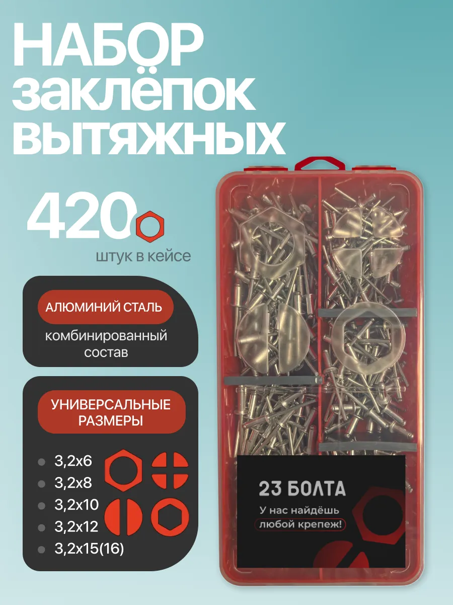 Заклепки вытяжные М3,2 в органайзере НАБОР 1