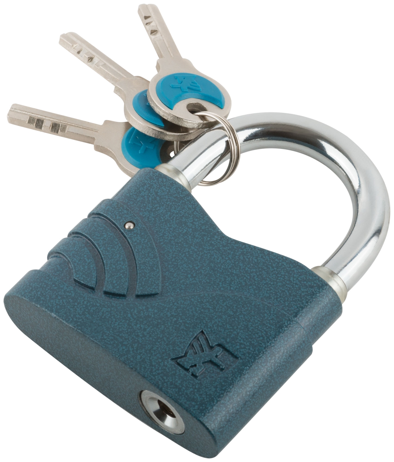 Навесной замок применяется для защиты помещений или шкафов. Конструкция изготовлена из алюминиевого сплава, прочного и надежного в применении. Дужка закалена. В комплекте 3 ключа финского типа выполненные из стали.