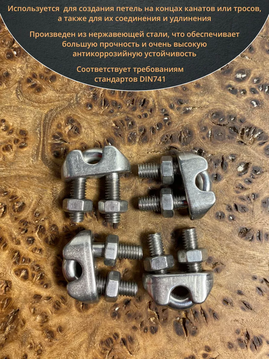 Зажим для стальных канатов М4, нержавеющий DIN 741 , 10шт.