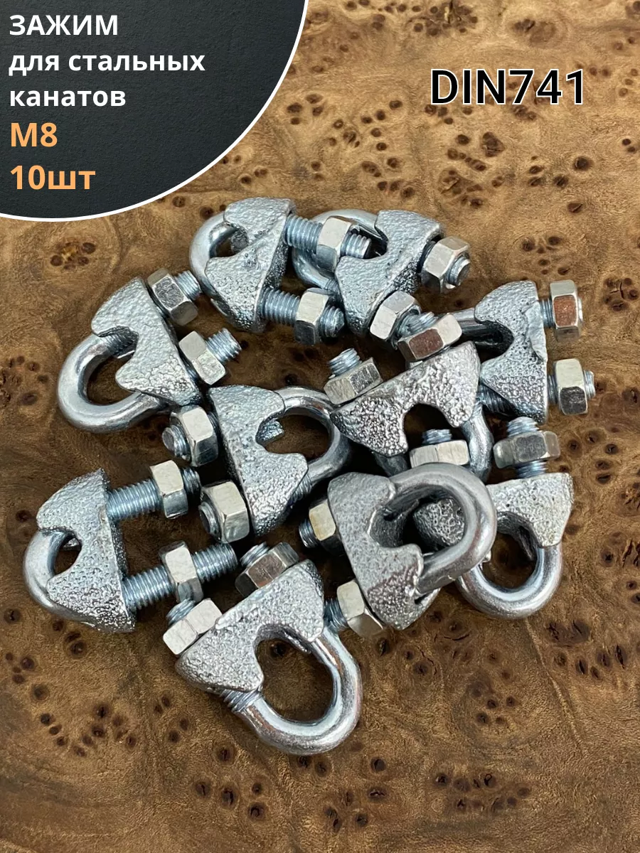 Зажим для стальных канатов М8 ОЦ DIN741, 10 шт.