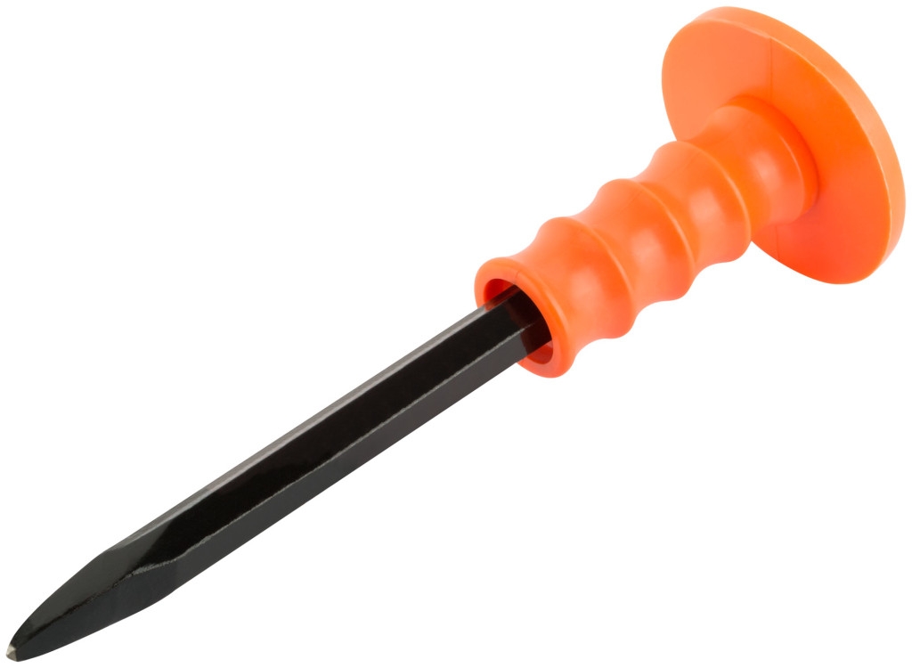 Для разметки и разбивки бетона, камня и кирпича. Пластиковый ударопрочный протектор защищает руки от повреждений. Материал: высокоуглеродистая сталь, ПВХ.