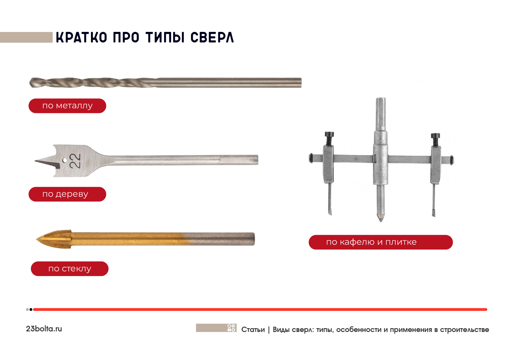 Правильный выбор инструмента — залог успешной и эффективной работы. Не пытайтесь одним инструментом сверлить разные материалы — это приведет к его быстрому износу и плохому результату. Ориентируйтесь на назначение, материал обработки и тип вашего оборудования.